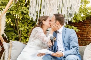 In the morning, Marlies and Wouter arrived at the beautiful wedding venue of ‘Het Goed van Gothem’. They got ready in the suites, accompanied by the bridesmaids. Just before the ceremony, they shared their ‘first look’. The ceremony took place in the sunlit garden. Marlies and Wouter were glowing all day long.